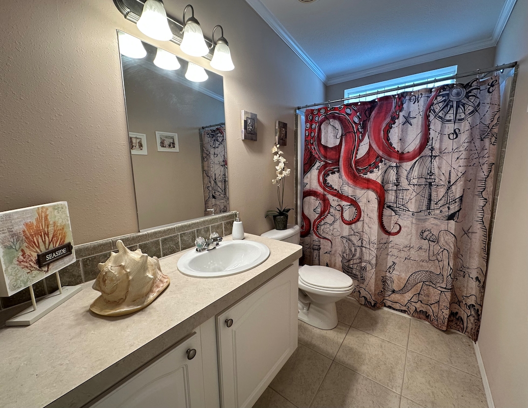 - Step in shower